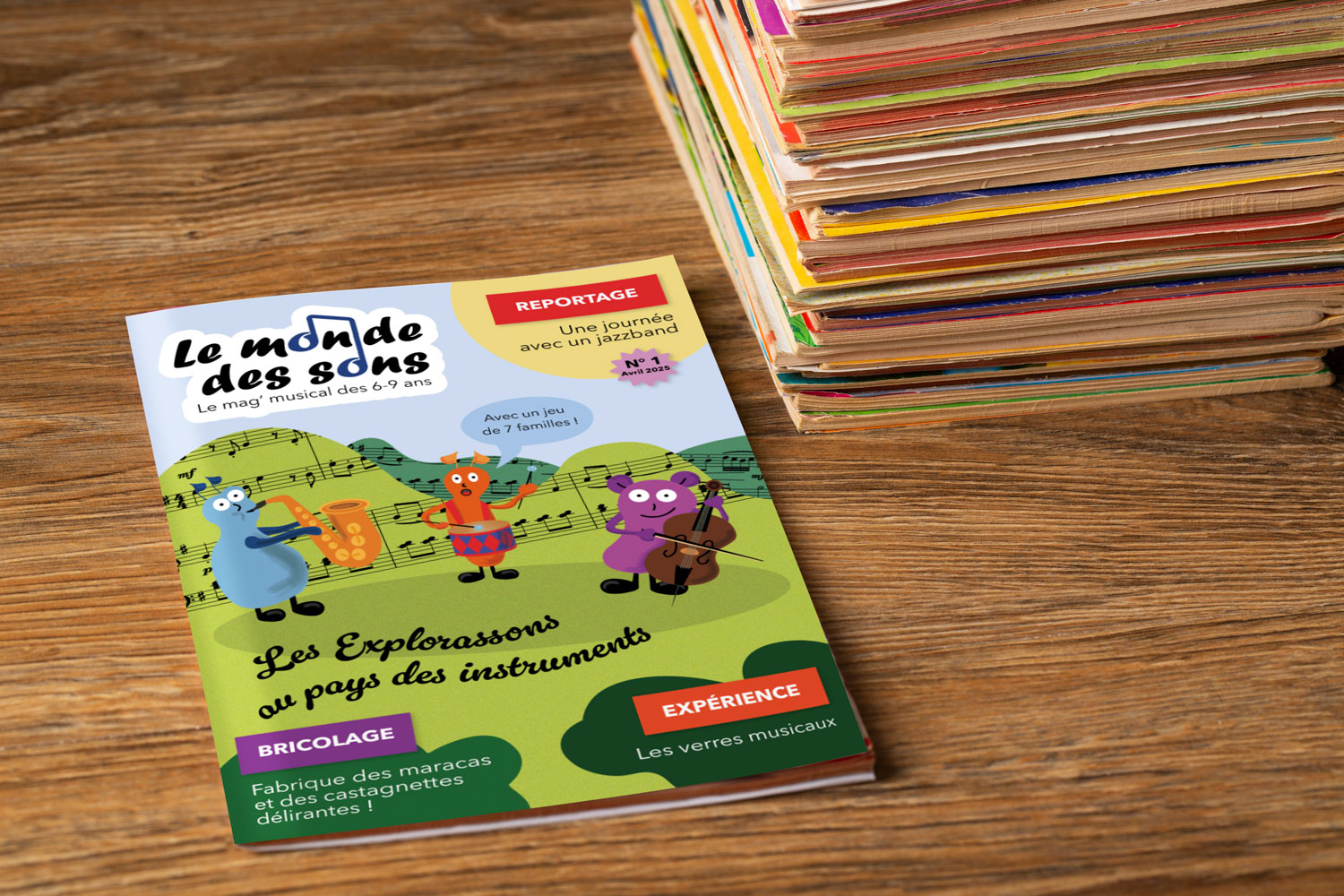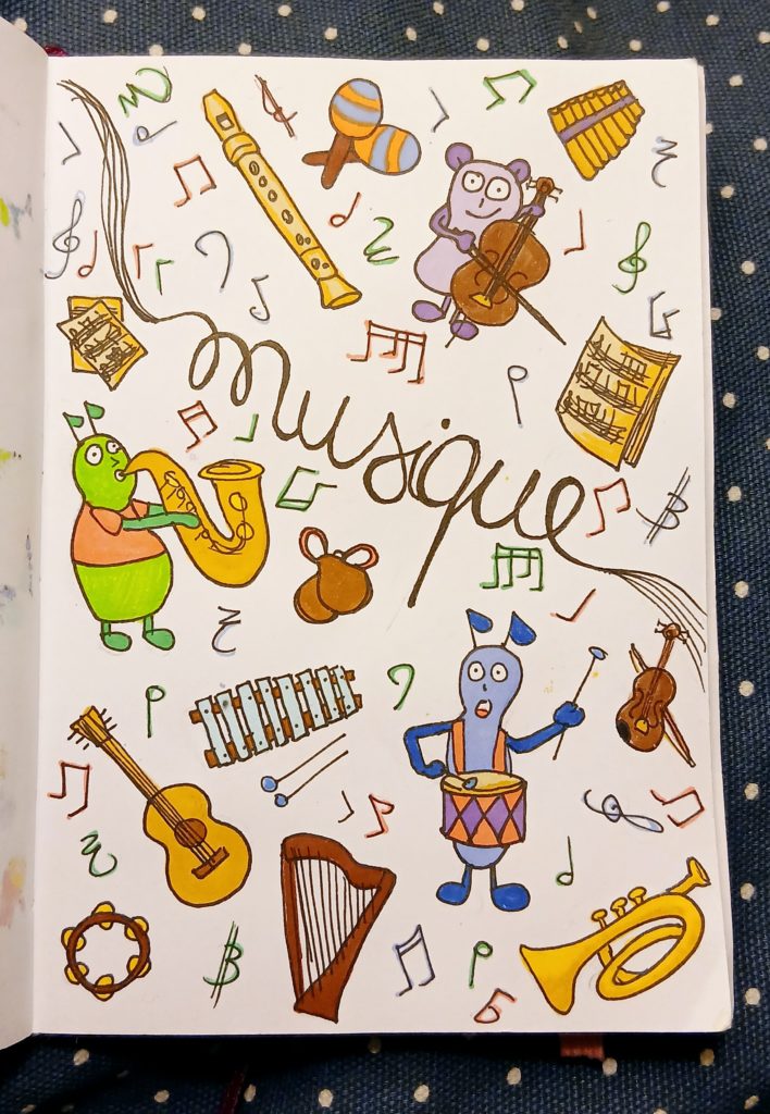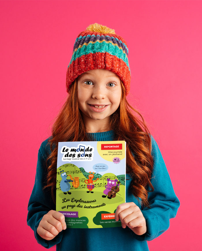 Réalisation d’une page de couverture pour un magazine musical destiné aux enfants de 6-9ans.
